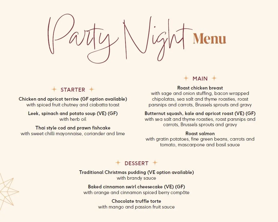 Xmas PartyPlease complete the form below! Name * First Name Last Name Starter * Please choose your starter Chicken Terrine Leak Soup Thai Fishcake Main Course * Please choose your main course Roast Chicken Butternut Squash Roast Salmon Desert * Please choose your desert Christmas Pudding Baked Cinnamon Cheesecake Chocolate Torte Partner/Guest Name First Name Last Name Partner/Guest Starter Please choose your starter Chicken Terrine Leak Soup Thai Fishcake Partner/Guest Main Course Please choose your main course Roast Chicken Butternut Squash Roast Salmon Partner/Guest Desert Please choose your desert Christmas Pudding Baked Cinnamon Cheesecake Chocolate Torte Thank you!